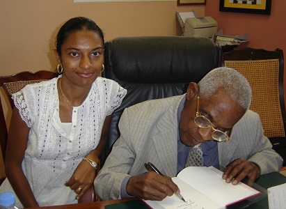 Il est courant de lire ou d’affirmer que la littérature antillaise nait véritablement lorsque retentit le grand cri nègre. Ce cri surgi de la plume errante d’un Martiniquais dont la poésie impose à l’homme antillais de se poser l’admirable question : « Qui et quels nous sommes ? » (Césaire, 1994 : 26). Le 4 mai 2006 à Fort-de-France, comme de nombreux prédécesseurs prestigieux, il s’agissait de partir à la rencontre de cet « Aimé Césaire » qui n’existait alors qu’à travers ses textes tant politiques que poétiques, cet « Aimé Césaire » sujet de tant d’ouvrages critiques, cet « Aimé Césaire » fantasmagorique, en somme, que l’on imagine comme on se représente généralement les grands hommes, solennel, ampoulé, affichant une supériorité intellectuelle. Lui se montra juste curieux de comprendre ce qui conduisait certains à se pencher encore sur son œuvre. Il comprit cependant très vite que c’est justement parce que son œuvre avait déjà été tellement triturée qu’elle intéressait. Il fallait « souffler les poussières » (Césaire, 1950 : 235). Il fallait savoir si cet homme d’apparence si simple âgé alors de 93 ans, ce petit homme noir souriant et humble avait conscience d’être une des grandes voix d’un siècle achevé mais aussi une référence, un modèle pour les générations successives. C’est pourquoi dès qu’il se fut assis à son impressionnant bureau en bois derrière lequel il disparaissait presque, il était important de lui poser sans ambages la question :